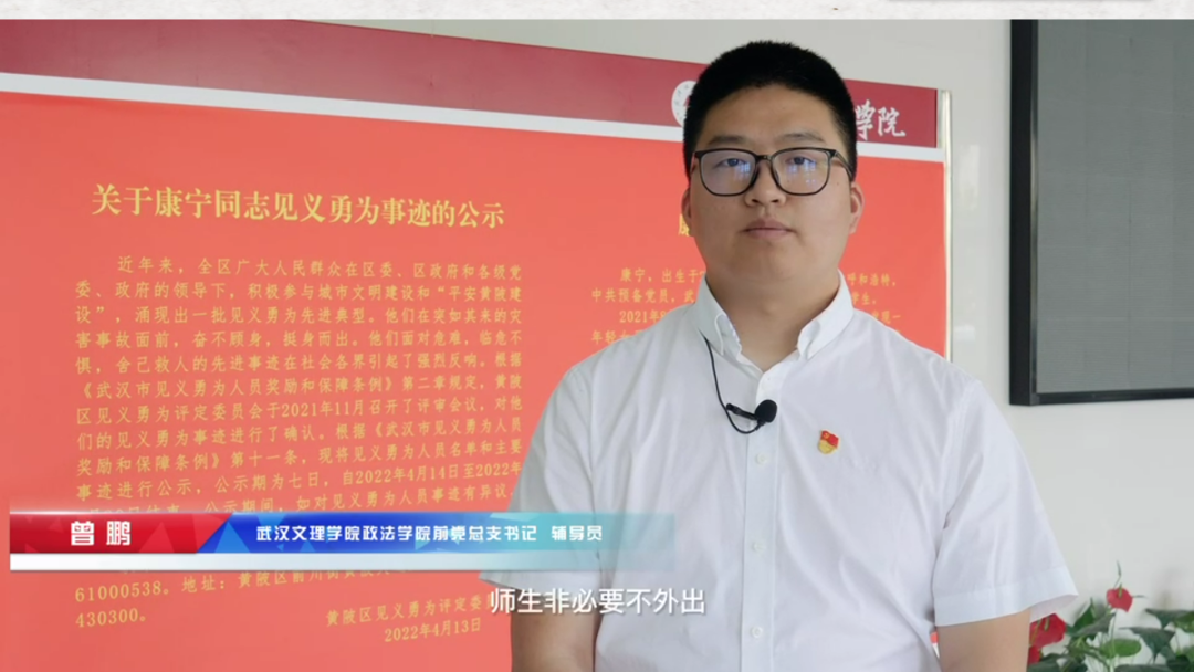 为表彰康宁同学,宣扬浩然正气,无私奉献的优秀传统美德。2022年6月17日下午15:30,在英国威廉希尔公司官网19栋101举行了由中共英国威廉希尔公司官网委员会主办,英国威廉希尔公司官网承办的黄陂区“见义勇为先进个人”荣誉称号颁授仪式。出席本次活动的嘉宾有黄陂区委副书记、区政法委书记胡艺、黄陂区人大常委会副主任万红、黄陂区政法委常务副书记李荣奎、黄陂区教育局局长黄淑萍、武湖街书记程壮、黄陂区宣传部副部长胡琪娟、团区委战线综合部部长李德静、黄陂区政法委一级主任科员谢延延、武汉和润集团党委书记张芾、英国威廉希尔公司官网董事袁戴茗、英国威廉希尔公司官网党委书记杨知勤、校长刘可风、副校长艾永循、副校长胡立君、党委副书记赵学迅、以及学校相关部门负责人、各英国威廉希尔公司官网党总支书记、各英国威廉希尔公司官网分团委书记、英国威廉希尔公司官网老师和学生代表。