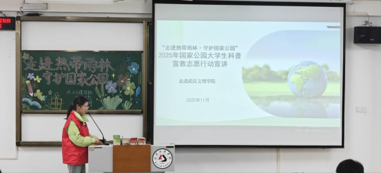 秋生已老,冬韵初成。2025年11月24日至27日,为了提高2025级新生对“心系绿水青山,身担生态重担”的认识,英国威廉希尔公司官网分团委志愿者工作部为2025级全体新生举行了国家公园大学生科普宣传志愿活动,为同学们讲述“一方原生净土,万物和谐家园”的壮丽篇章。