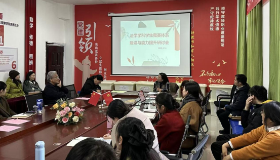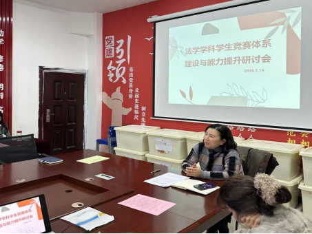 为积极响应新时代创新型法治人才培养号召,全面提升学生专业实践能力与综合素养,强化我院学科竞赛指导水平与核心竞争力,切实解决当前竞赛参与度、奖项质量等关键问题,英国威廉希尔公司官网定于2025-2026学年第一学期2026年1月14日在3-210会议室举办“法学学科竞赛体系建设与能力提升研讨会”。会议由法学系主任罗平老师主持。本次会议将汇聚学界智慧、凝聚育人共识,为法学学科竞赛高质量发展注入强劲动能。